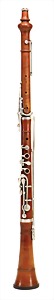 Oboe, klassisch, aus Buchsbaum, 3 Elfenbeinringe, 12 Messingklappen, Riss im Mittelstück oben, Riss wurde geklebt, Zeit 1830, 55cm, A=442, Holz Zust. 2, Mechanik Zust. 2 #248#