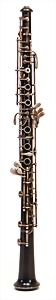 Oboe aus Kokosholz, schwarz, Vorläufer der Wiener Oboe, 4-tlg., 12 Silberklappen, mit Grünspan, 54,9 cm, Holz Zust. 2, Mechanik Zust. 2 #309#