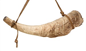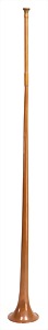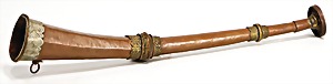trembita Russia, 2-part, mouthpiece is worked into, overall lenght:: 2.98 m, ornaments at the top, birch winding was painted, good condition