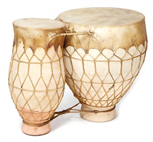 gongo, Morocco, double drum made of clay, with tied on skins, with a diameter of 13.5 cm and 24 cm #31#