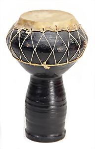 Tontrommel, Darabukka (goblet drum), black body , turned up pelt , Africa, 26 cm, condition 2-3 #778#