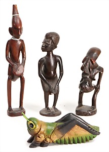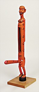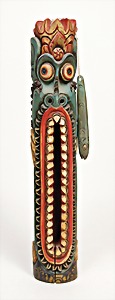 slit drum, as standing figure, with penis and vagina, Bhuta (earth spirit Bali), wood: colored ,, height: 54 cm, mounted on a wooden board#266#