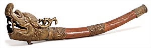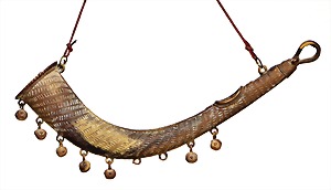 transverse horn, bronze casting, Nagaland, jungle area between Burma and India, 30 cm, 2 bobbles are missing #225#