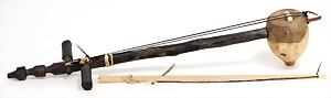string instrument, Tibet, carved wood, pegbox shaped like a horse head, probably around 1900 #84#
