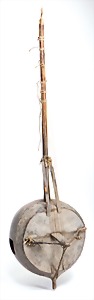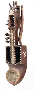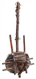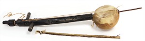 spike violin with bow, 62.5 cm, Sudan, resonating body is made of coconut covered with animal skin, 2 strings #728#