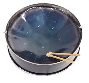 steel drum, metal, with a diameter of 41.5 cm, height: 13 cm, 9 notes, 2 wooden mallets with rubber head #925#