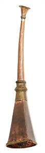 short horn, Kangling, with draggonhead, China, Tibet, embossed copper, with brass ornaments, 42 cm #634#