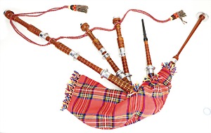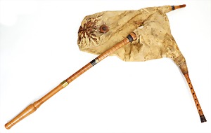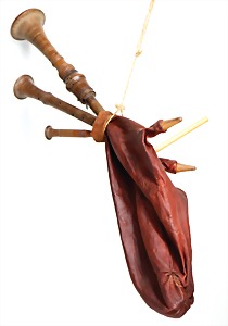 bagpipe, from Macedonia, with 1 chanter and drone pipe, goatskin bag, bag is caused of old age in worn condition #201#