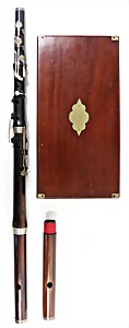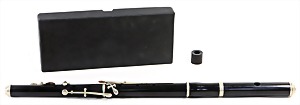 transverse flute, in rosewood, with silver rings (stamped), 2 head joints (No. 2 and 3), 8 silver keys with crown signet in the bulge and pedestal bearing, series No. 1295, between 1811-1814, signed on all parts: MONZANI & Co., over it a crown, in a mahogany box, overall lenght: 68.5 cm, speaking lenght: 60 cm, wood: condition 1-2, mechanism: condition 2 #476#