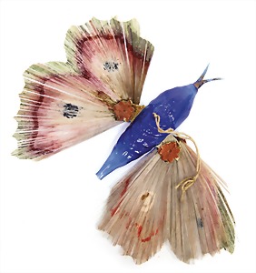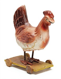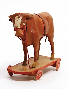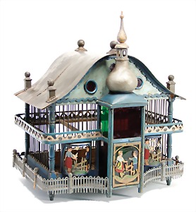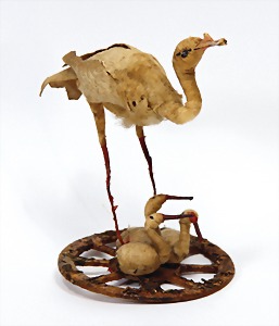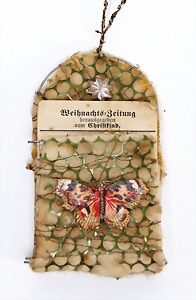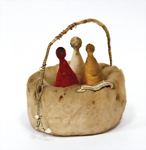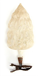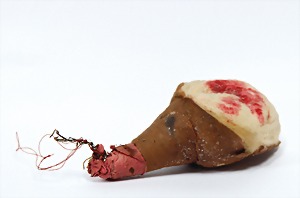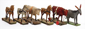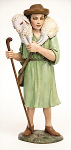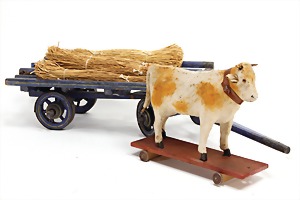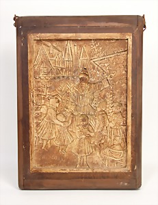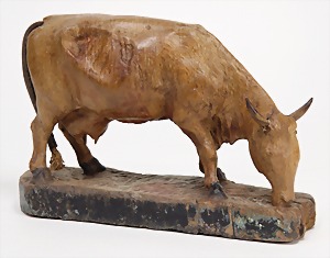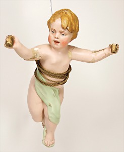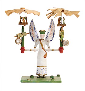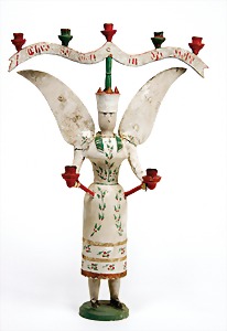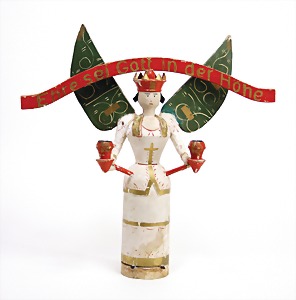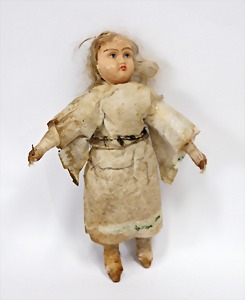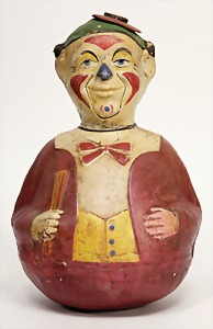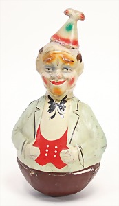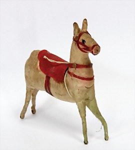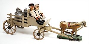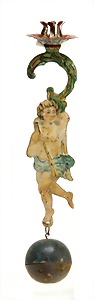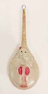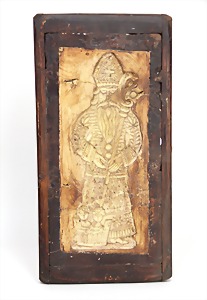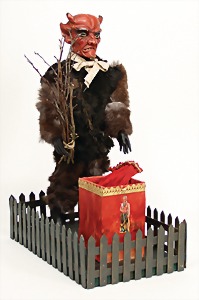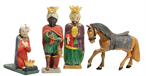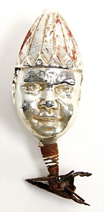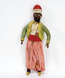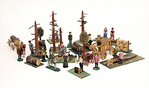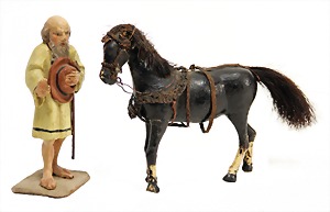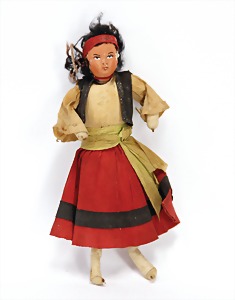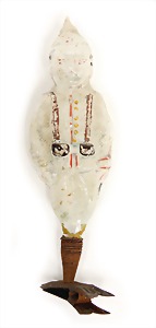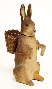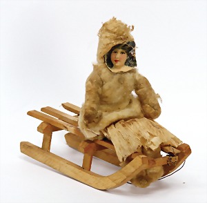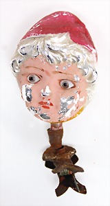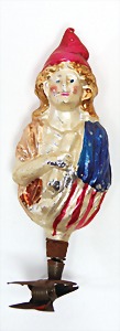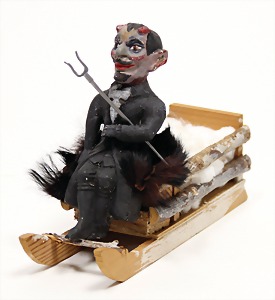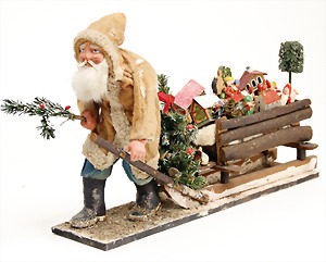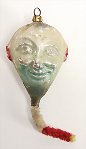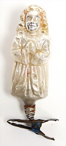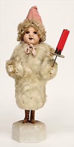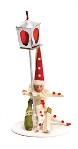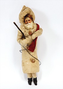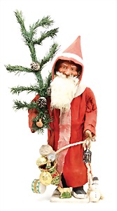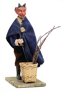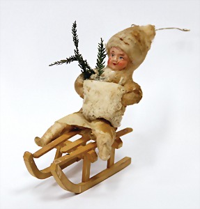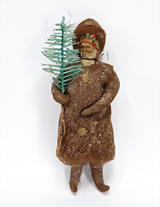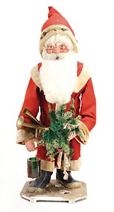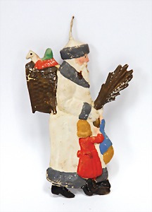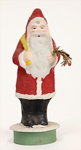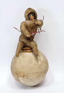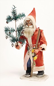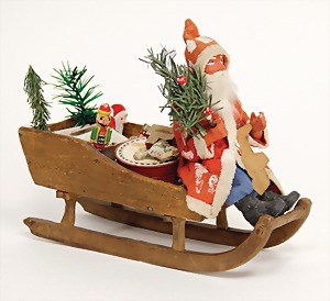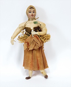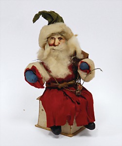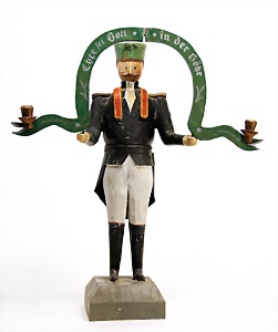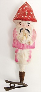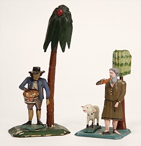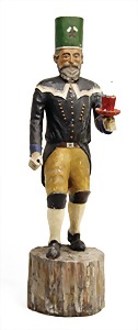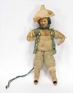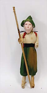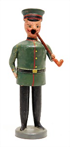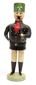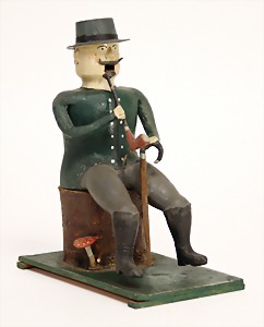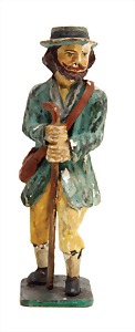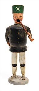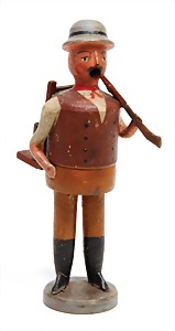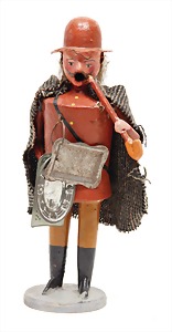 Räuchermann, wohl Haustein, Wanderer auf Holzpflock sitzend, seitl. Pilz, Holz farbig gefasst, Teigarme, mit Hut, Schnurrbart, Stock und Pfeife, H: 23 cm, Figur mit Nase und Ohren, schöner Orig.-Zust., vor 1900, ausgefallene Größe, selten
