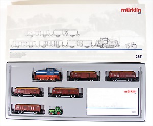 Zugpackung, H0, Artikel-Nr.: 2861, im Orig.-Kart., neuw. Zust., Rüben-Zug, Diesel hydraulische Werkslokomotive, 5 offene Güterwagen mit herausnehmbaren Einsätzen als Zuckerrüben-Ladung
