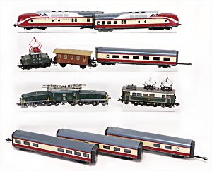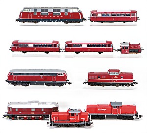 8-tlg., Diesel-Lokomotiven, Märklin u. a., auf System Märklin, mit Digital-Decodern ausgerüstet, meist guter Zust., teils kl. Fehler, ohne Kart., in die Lokomotiven wurden elekt. Bausteine eingebaut, bitte besichtigen