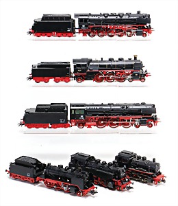Konv. 6-tlg., H0, Dampf-Lokomotiven, Schlepptender und Tender, Märklin u.a., auf System Märklin, mit Digital-Decodern ausgerüstet, meist guter Zust., teils kl. Fehler, in die Lokomotiven wurden elekt. Bausteine eingebaut, bitte besichtigen