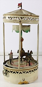 Karussell, Blech, handlackiert, Dampfmaschinenantriebsmodell, Reiter lithogr. 29 cm, bespielt, gut mit kleinen altersbedingten Lackfehlern