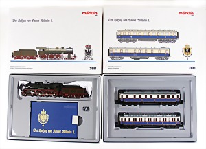 H0, „Der Zug von Kaiser Wilhelm II.“, 2881, Schnellzuglokomotive S10, der „Königlich Preußischen Eisenbahnverwaltung“, Gefolgewagen der Damen, Hof Speisewagen mit Küche, Salonwagen der Kaiserin, Gefolgewagen der Herren, Salonwagen des Kaisers, Hofzug Gepäckwagen, alles neuw. Im Orig.-Kart.