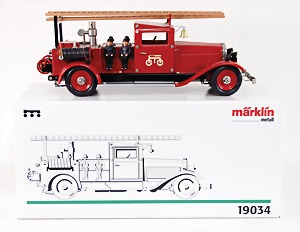 Baukastenauto, 19034, Feuerwehr, Blech, Neuanfertigung, neuw., Orig.-Kart., ohne Styroporeinsatz