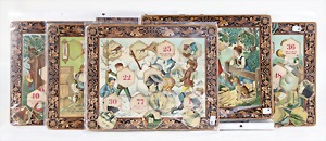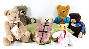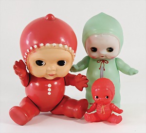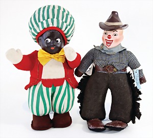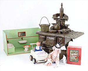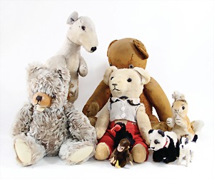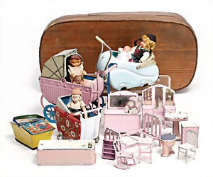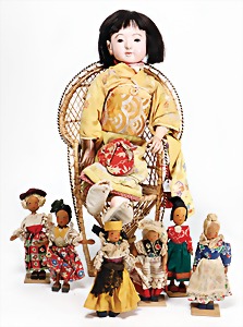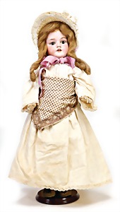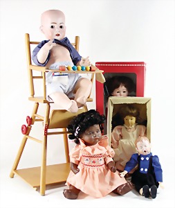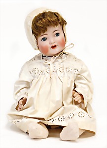 6 Porzellan/Masse/Celluloid-Puppen, darunter AM 390 N, Haarriss am Hinterkopf, blaue Schlafaugen, off. Mund, Zähne weggebrochen, Echthaar-Perücke, auf Masse-Stehbabykörper, stärker bespielt, 45 cm, 1x keramische Werke Germany 136, blaue Schlafaugen, off. Mund, Zähne weggebrochen, neue Kunsthaar-Perücke, Masse-Stehkörper mit Stimme, 42 cm, 1x Heubach Köppelsdorf 342, blaue Schlafaugen, off. Mund, 2 Zähne oben, Kunsthaar-Perücke, Masse-Stehbaby-Körper, 29 cm, 1x König & Wernicke 621/46, dunkel gespritzt mit braunen Schelmen-Augen, off. Mund, Zähne, Kunsthaar-Perücke, Masse-Stehkörper, 45 cm, 1x AM 2966, braune Schlafaugen, off. Mund, Zähne, Kunsthaar-Perücke, Masse-Stehkörper, 34 cm, 1x gem. Emaso, blaue Schlafaugen, geschl. Mund, Echthaar-Perücke, Celluloid-Stehkörper, 34 cm, Kleidung nachgenäht