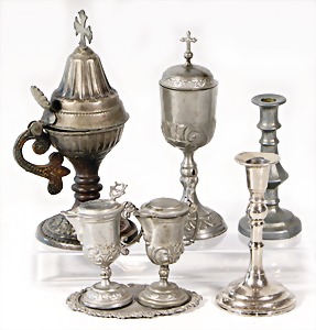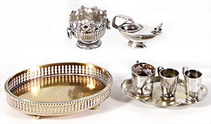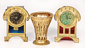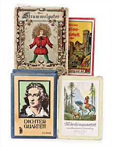 Café, auf Holzsockel, 45 x 27 cm, mit Holzgeländer, aufgesteckte Rückwand, Papier beklebt, mit kleinem Podest, Alter?, darin einige Möbelteile „Boule“, 2 Stühle mit kleinem rundem Tisch, Wachstuch bezogen, mit goldener Prägung und 1x 2 Stühle, 1 Sessel, stoffbezogen, dazu runder Tisch, H: 6,5 cm, 2x Porzellan Kaffeeservice, 1x gem. francais und 1x gem. Limoges, dazu 2 Biedermeier Brustblattkopf-Puppen, Stoffkörper, Porzellan-Arme u. –Unterschenkel, 9,5 cm und 1 Puppenstuben-Mann, Porzellan-Brustblattkopf, modell. Frisur, gemalte Augen, geschl. Mund, Stoffkörper, Porzellan-Arme u. –Unterschenkel mit anmodell. Schuhen, 16,5 cm, Filzanzug mit einer Geige, aufziehbares Spielwerk, nicht intakt