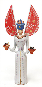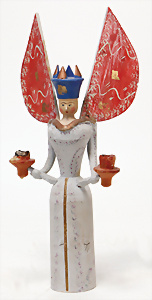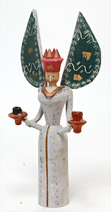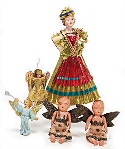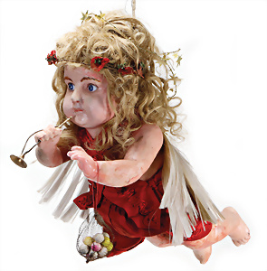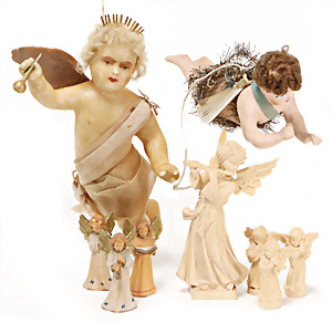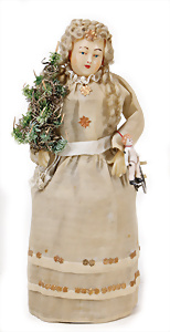 Weihnachtsschmuck, Engel, Masse, wachsüberzogen, Glasfaser-Flügel, fest eingesetzte Glasaugen, Orig.-Zust. mit altersbed. Spannungsrissen an Armen u. Füßen, außergew. Gr. 46 cm, Orig.-Zust., mit Musikspielwerk, spielt 2 Lieder