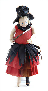 Nähmaschine, Nr.4, liliputian schwarz, Baujahr 1930, guter Zust., funktionsfähig, Handrad leicht schwergängig, Made in Germany, inkl. 1 Büste mit Kleid, im Orig.-Kart., 9 x 6 cm