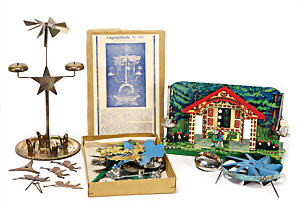 2 Teile Engelsgeläut, Knusperhäuschen nicht kompl., 1 Engelsgeläut, Schweden, ohne Kart. u. Anleitung, 1 Engelsgeläut, 610, im Orig.-Kart., sehr guter Zust. ohne Anleitung