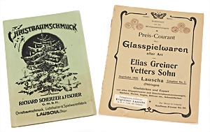 Christbaumschmuck, Orig.-Katalog, kleinformatig (Leporelllo), Richard Scherzer & Fischer Lauscha, um 1910, 1 Blatt mit ca. 6 cm Einriss am Falz, selten, Preis- Courant über Glasspielwaren aller Art von Elias Greiner Vetters Sohn, Lauscha, um 1910