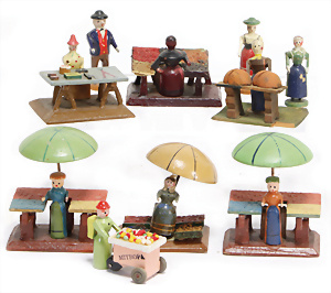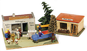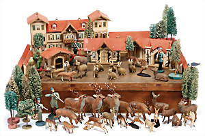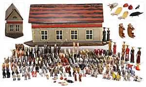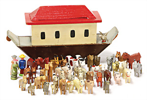 Brettarche, ca. 1860-80, 60 cm, mit Reifentieren, viele seltene Tiere, spielende Affen, Insekten, mit Familie Noah, Figuren mit Nase, 9,5 cm, schöner Orig.-Zust.