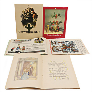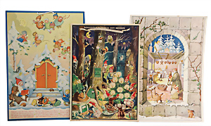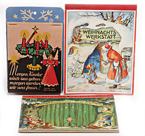 3 Teile Weihnachtskalender, „Der Märchenwald rüstet für’s Weihnachtsfest“, AK mit Reimen, 50er Jahre, Himmelstor, ein Kalender Charlotte Baron Rar, 30er Jahre, 1 Weihnachtskalender ohne Titel, sehr guter Zust.
