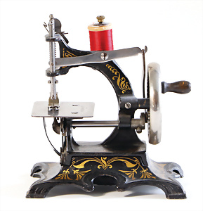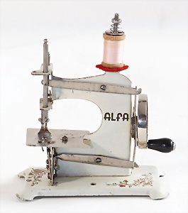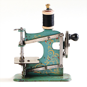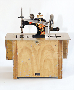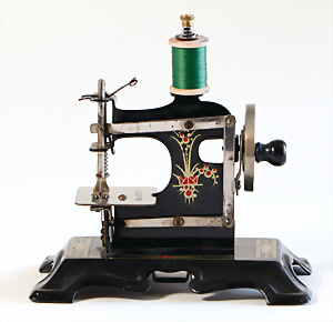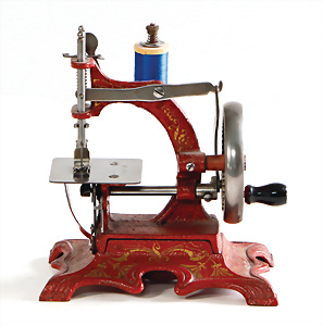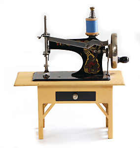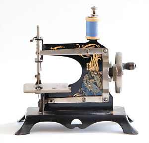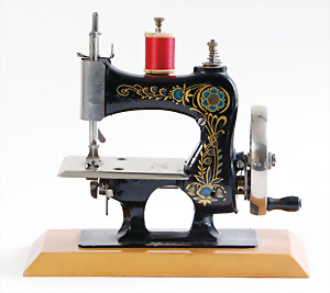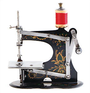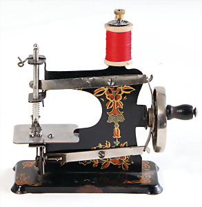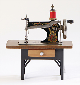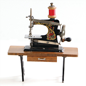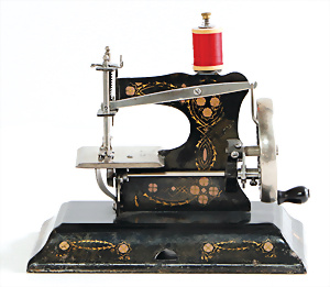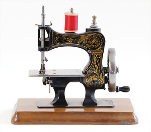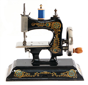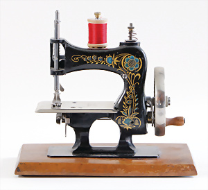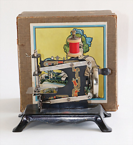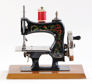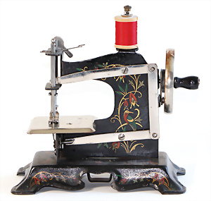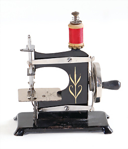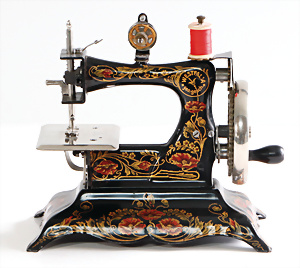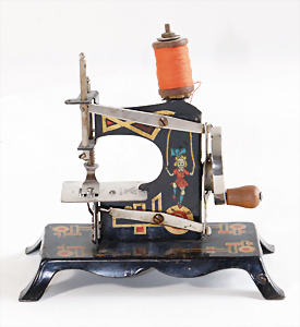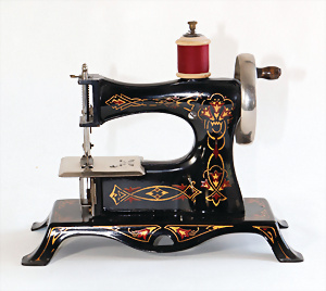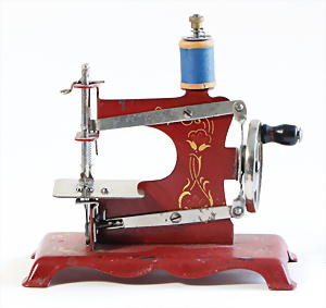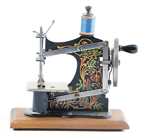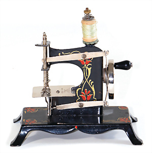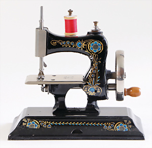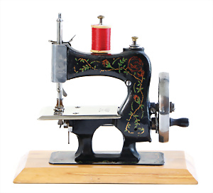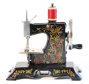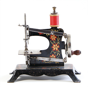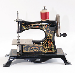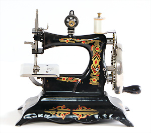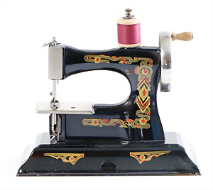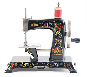 Nähmaschine, Nr. 25, "Rotkäpchen und der böse Wolf"-Dekor, Baujahr 1935, minim. Lackschäden, sonst guter Zust., Made in Germany, 20x20 cm, funktionsfähig