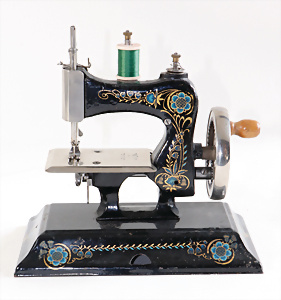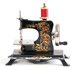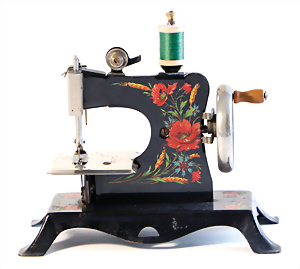 Nähmaschine, Nr. 5, bunte Blumen mit Gold-Dekor, Baujahr 1930, Made in Germany, minim. Lackschäden, sonst guter Zust., funktionsfähig, 18 x 17 cm