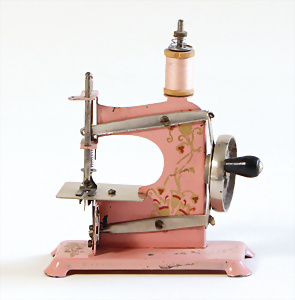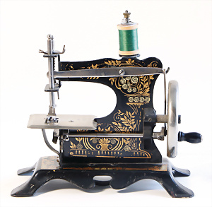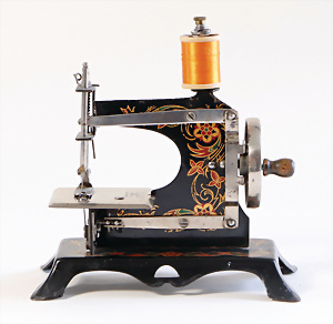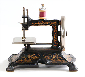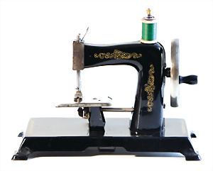 Nähmaschine, Nr. 50, Aschenputtel-Dekor, Baujahr 1935, Handkurbel minim. beschädigt, sonst guter Zust., funktionsfähig, Made in Germany, 21x22 cm