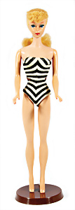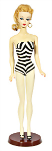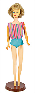 Ponytail- Barbie, Nr. 2, blond, schöne Bemalung, Ohrringe, Orig-Frisur., Puppe bespielter Zust., mit Orig.-Badeanzug