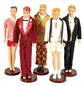 Konv. 4x Ken, 3x Painted Hair, 1x Flocked Hair, dazu 1x Allan, alles Straight Leg, bespielt in Orig.-Outfits, nicht kompl.