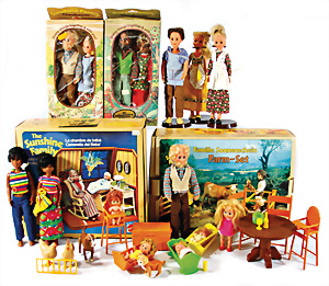 Schönes Konv. Familie Sonnenschein u. Puppen, dazu 1 Farm-Set, 1 Kinderzimmer alles im Orig.-Kart. wohl kompl., dazu 2x Orig.-Verpackung Großeltern u. kl. Möbelteile
