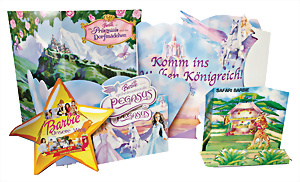 4 Werbeaufsteller, bespielt, die Prinzessin u. das Dorfmädchen, H: 130 cm, "Komm ins Wolken Königreich", H: ca. 125 cm mit 2 zusätzl. Steckteilen, mit Safari-Barbie u. Barbie u. der geheimnisvolle Pegasus, 2 Teile, Gesamthöhe ca. 76 cm, u. 1x "Barbie unsere Welt" Pappposter