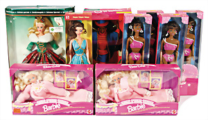 Konv. 6 90er Jahre Barbies, „Dolls of the world collection“, alle im Orig.-Kart., unbespielt