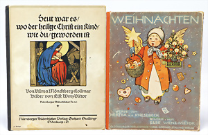 2 Teile Bücher, "Die Erzählungen von der Weihnachtskrippe", von Dietmar Möndenberg, Kollmar, ca. 1925, Zust. 2-3, "Weihnachten" Verse von Hertha V. D. Knesebeck, Bilder von Else Wenz-Viétor Verlag Stalling, wohl 30er Jahre, Zust. 2-3