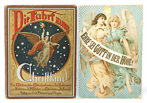 "Weihnachtsklänge" eine Festgabe für das deutsche Haus, 12 Weihnachtsklänge, um 1900, Einband mit Oblaten-Bild beklebt, "Die Fahrt zum Christkind" ein Weihnachtsmärchenbuch von Jul: Lohmeyer, 1896, bunt illustriert, Zust. 2-3