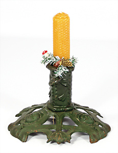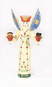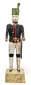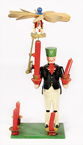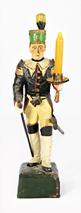 Bergmanns-Leuchter, Holz, 44 cm, farbig gefasst, teilw. ausgebessert, beide Kerzenhalter fehlen, wohl 20er Jahre