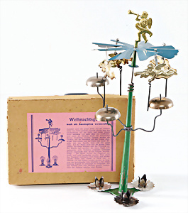 Weihnachtsgeläut, auch als Baumspitze verwendbar, Sterne über den Glocken fehlen, bespielt im Orig.-Kart.