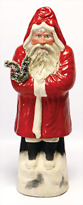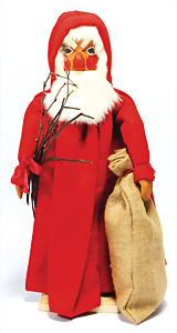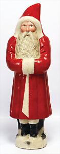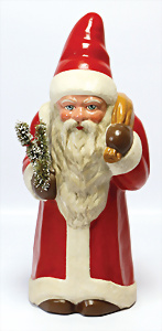 Weihnachtsmann, Papiermaché, Filz-Kleidung mit ERZGEBIRGE Spielzeug, Atelier Werner Brauer, 2001, sehr schön gearbeitet