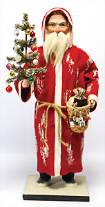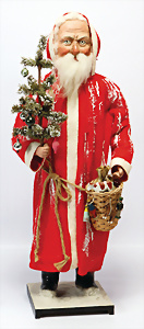 Weihnachtsmann, Papiermaché, Glasaugen mit Weihnachtsbaum u. Kiepe, Atelier Werner Brauer, 2002, sehr schön gearbeitet, 60 cm