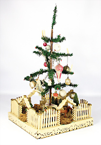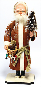Weihnachtsmann, Atelier Werner Brauer, 2000, 40 cm, Filz-Kleidung, mit ERZGEBIRGE Spielzeug u. Weihnachtsbaum