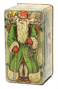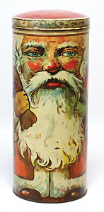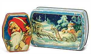 2 Teile, Weihnachtsdose, Blech lithogr., Weihnachtsmann auf Schlitten, 20,5 cm, 1 Weihnachtsdose, 13,5 cm