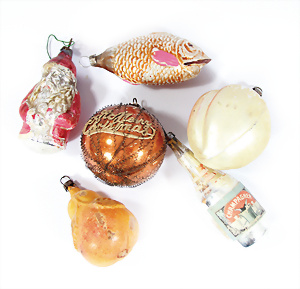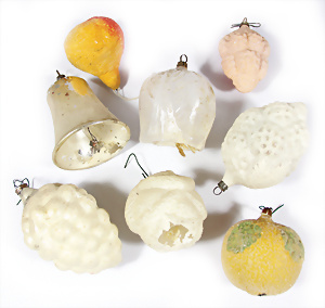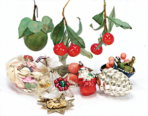 Weihnachtsschmuck, Traubenkugel, Glas, 1 Stern, Weihnachtsmann, Früchte, Korb mit Früchten, Blumen, Keramik-Korb