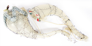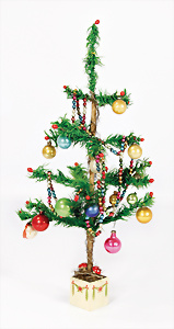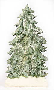 Paradiesgarten mit Federbaum, 80 cm, geschmückt mit Glas-, Watte- u. Papierteilen, unten Masse-Tiere