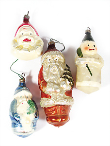 4 Teile Christbaumschmuck, Weihnachtsmann mit Weihnachtsbaum, Clownsbüste, kl. Weihnachtsmann, Schneemann