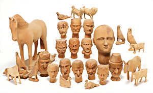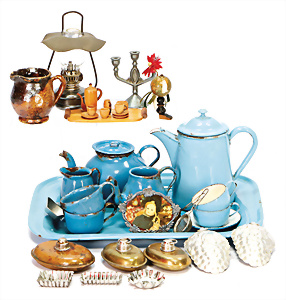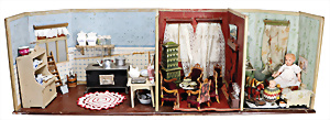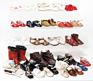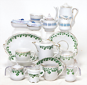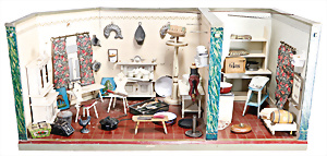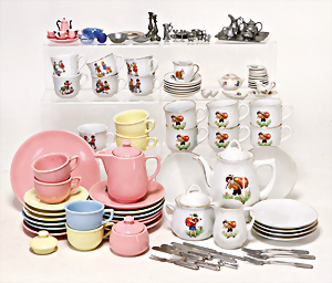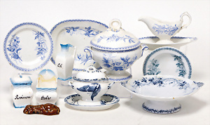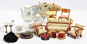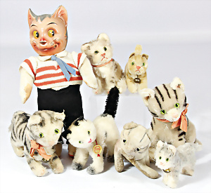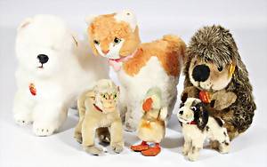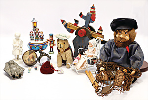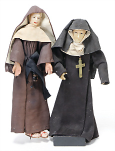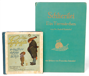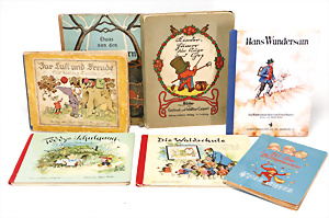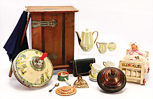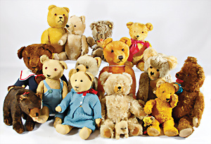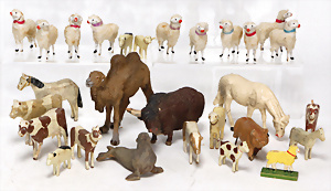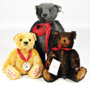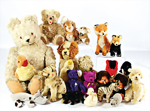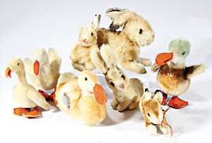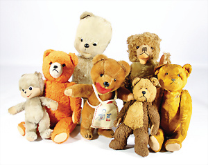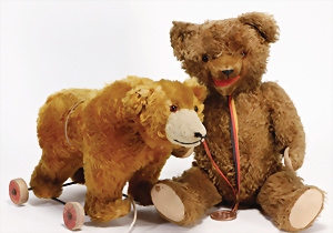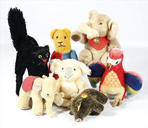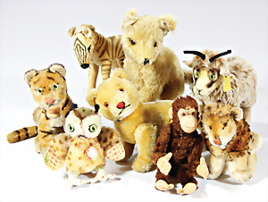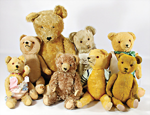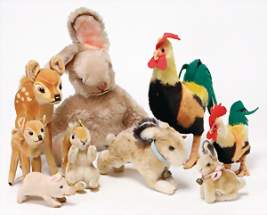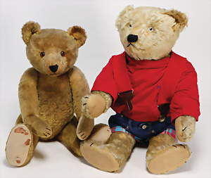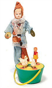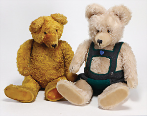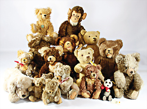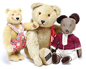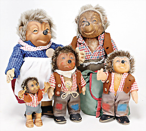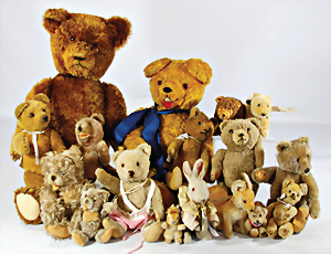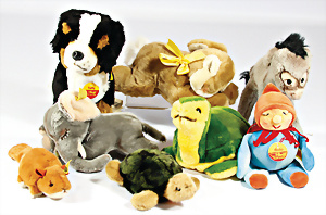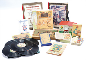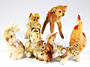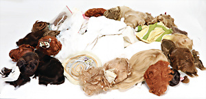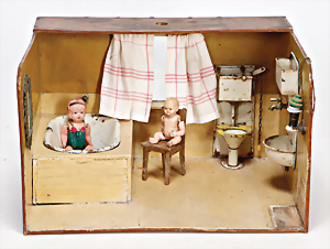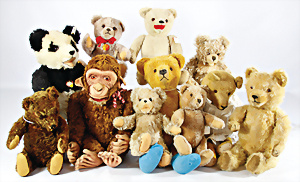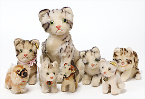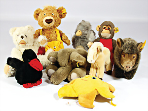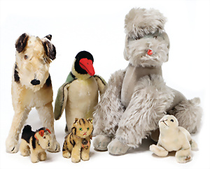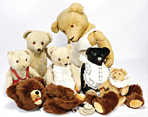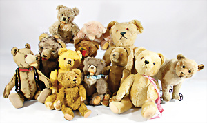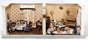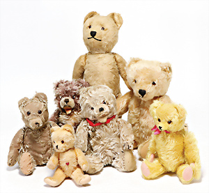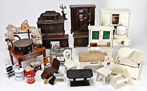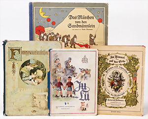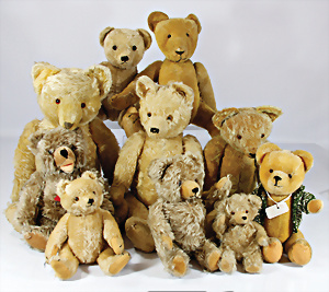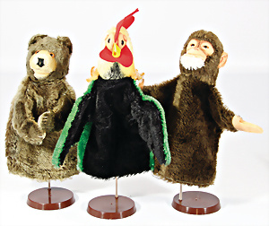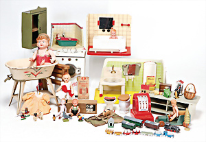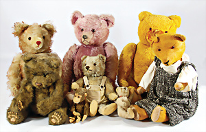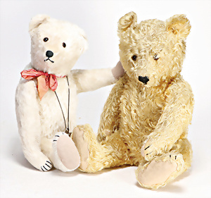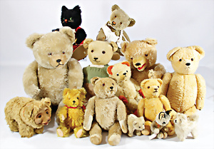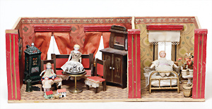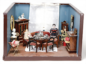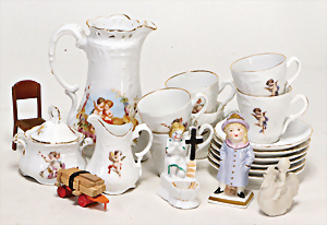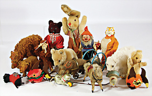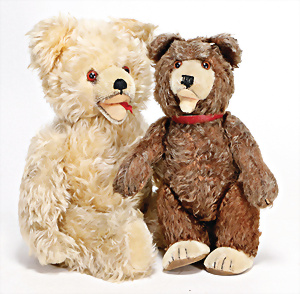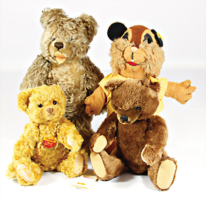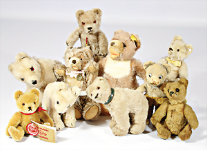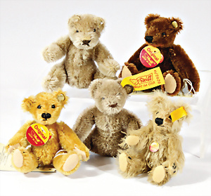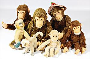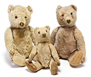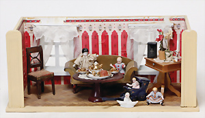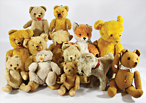 4 Porzellankopf-Puppen, ungem., fest eingesetzte blaue Glasaugen, off. Mund, Zähne, auf Masse-Stehkörper, 29 cm, ohne Perücke, 1x gem. DEP, braune Schlafaugen, off. Mund, Zähne, durchst. Ohren, Echthaar-Perücke, Masse-Gliederkörper, stärker bespielt, Farbabrieb an den Händen, 27 cm, 1x gem. GEBR. KÜHNLENZ, blaue fest eingesetzte Glasaugen, off. Mund, Zähne, Masse-Stehkörper mit anmodell. Schuhen u. Strümpfen, ohne Perücke, 24 cm, 1x AM 390, blaue Schlafaugen, off. Mund, Zähne, Echthaar-Perücke, Masse-Stehkörper, 30 cm