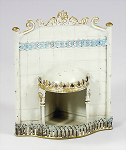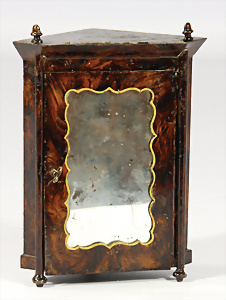 Biberacher Blech, Eckkleiderschrank, H: 16,5 cm, kl. altersbed. Lackfehler, schöner Orig.-Zust., innen Kleiderhaken, Tür außen verspiegelt, Verzierung fehlt