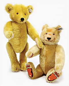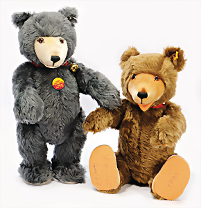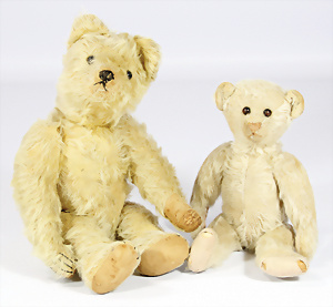 Konv. 2 Teile Bären, Vorkrieg, 26 u. 33 cm, abgeliebt, Schuhknopfaugen